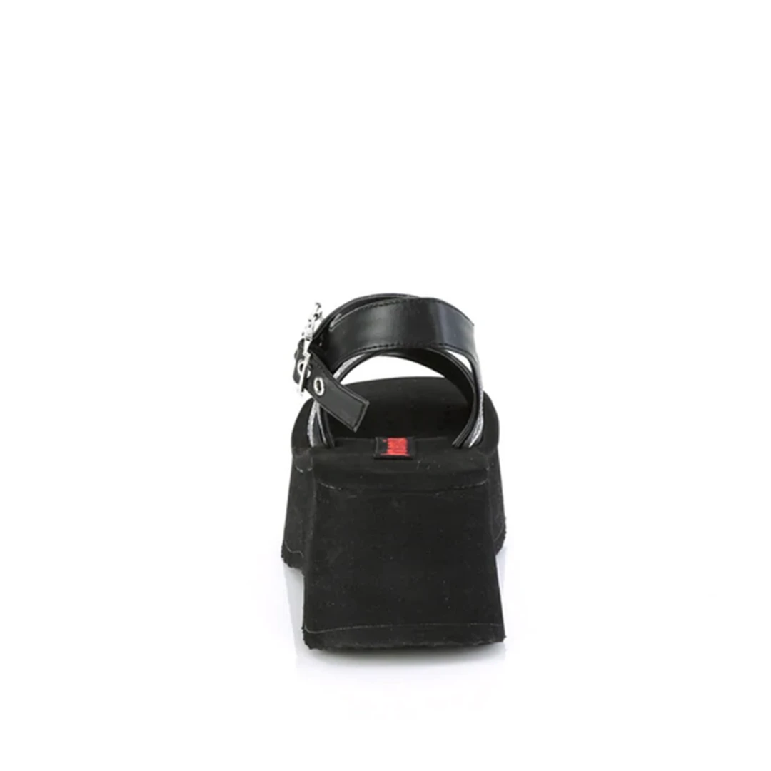 Spin up a wicked web in these platform ankle strap sandals from Demonia! They feature a 2.5″ platform for extra height, while the vamp has a spiderweb embroidered detail and the ankle strap fastens with a killer silver tone spider shaped buckle.