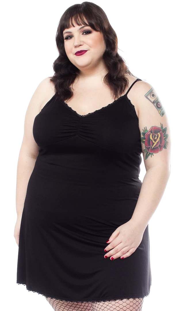 This classy, little dress will give you all the 90’s nostalgia vibes. It’s made out of a super soft rayon knit, it’s stretchy, and it has adjustable spaghetti straps. It also has delicate, soft lace trim that’s the icing on the cake! This dress is super versatile – dress it up with heels and a jacket, or wear it everywhere and anywhere with fishnets and your favorite boots. You’re going to love it!