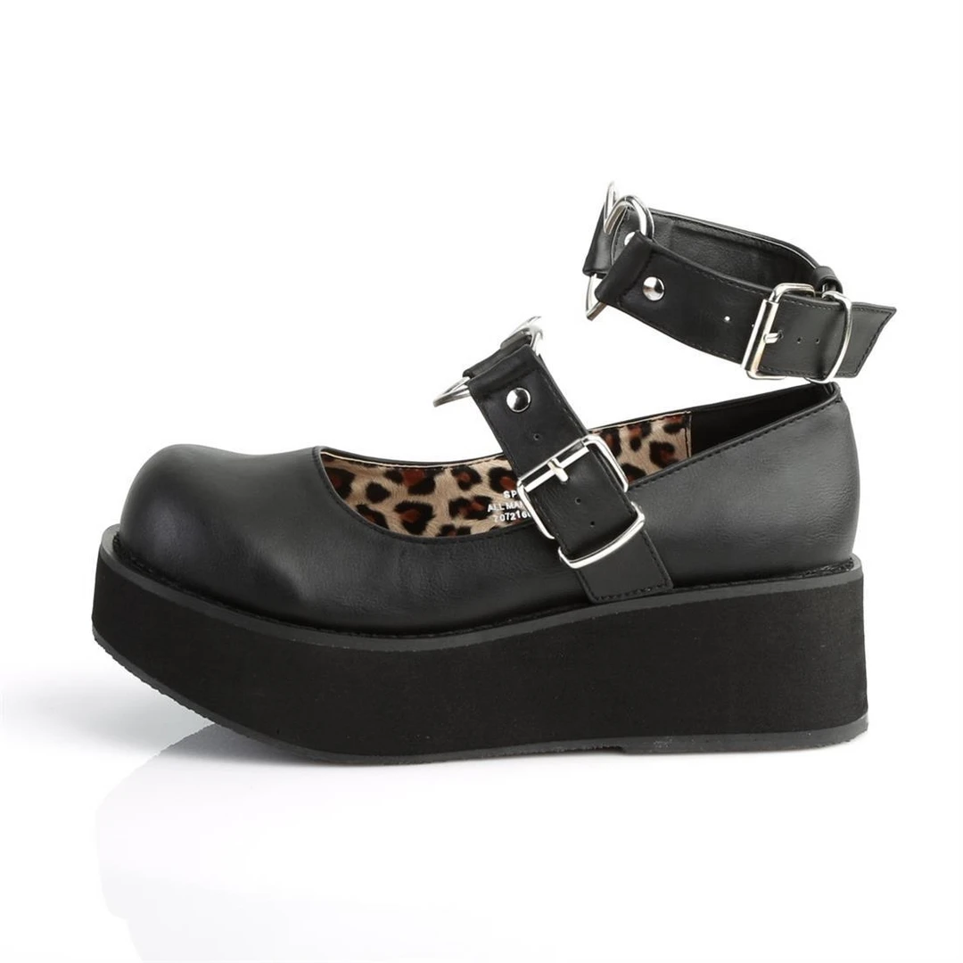 Be still our hearts! The Sprite Platform Mary Janes are the sweetest complement to your ensemble. Featuring a 2 1/4″ platform sole for just a touch of height, they’re completed with heart o-ring detailing on both the front and wraparound ankle straps, with buckle closures for easy on and off. Pair with your favorite fishnets or anklets for a heart-stealing look!