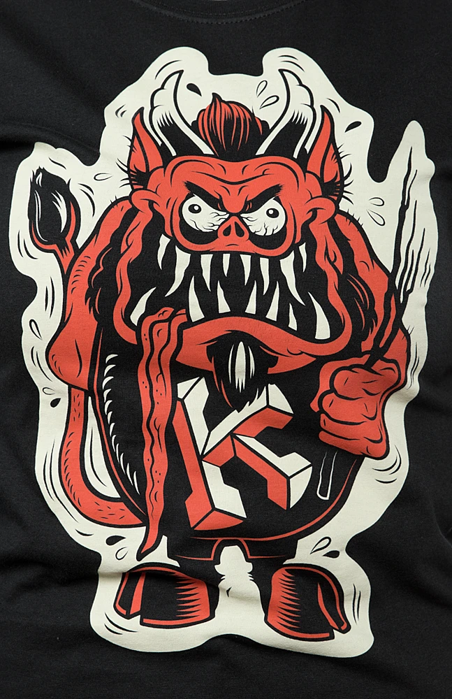 The indomitable beast that you know and fear has been all Fink’d up to bring you… GROSS VOM KRAMPFINK! Created by Nik Scarlett, the brilliant mind behind Dumb Junk, this tee features this iconic new beast, printed on a soft black cotton tee.