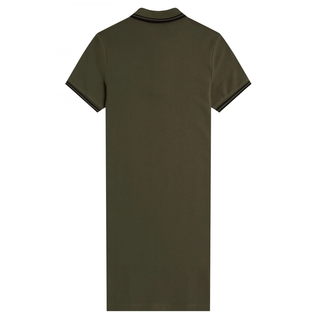 This cotton tennis dress is inspired by Fred Perry’s classic polos. Using the Fred Perry Shirt as its starting point, this adaptation has a straight fit and their signature twin tipping at the collar and cuff. With a military green as the base, this dress features twin tipped stripes in black, with coordinating laurel embroidery on the chest, finished with a two button placket. Classic and so easy to wear!