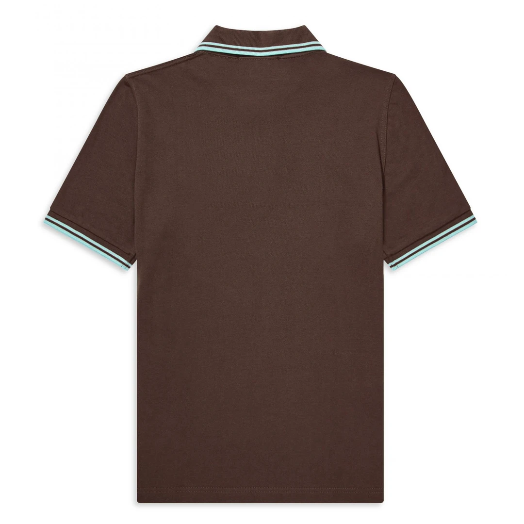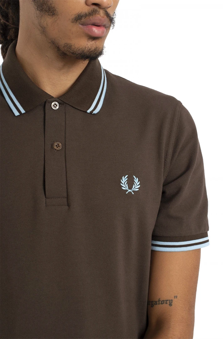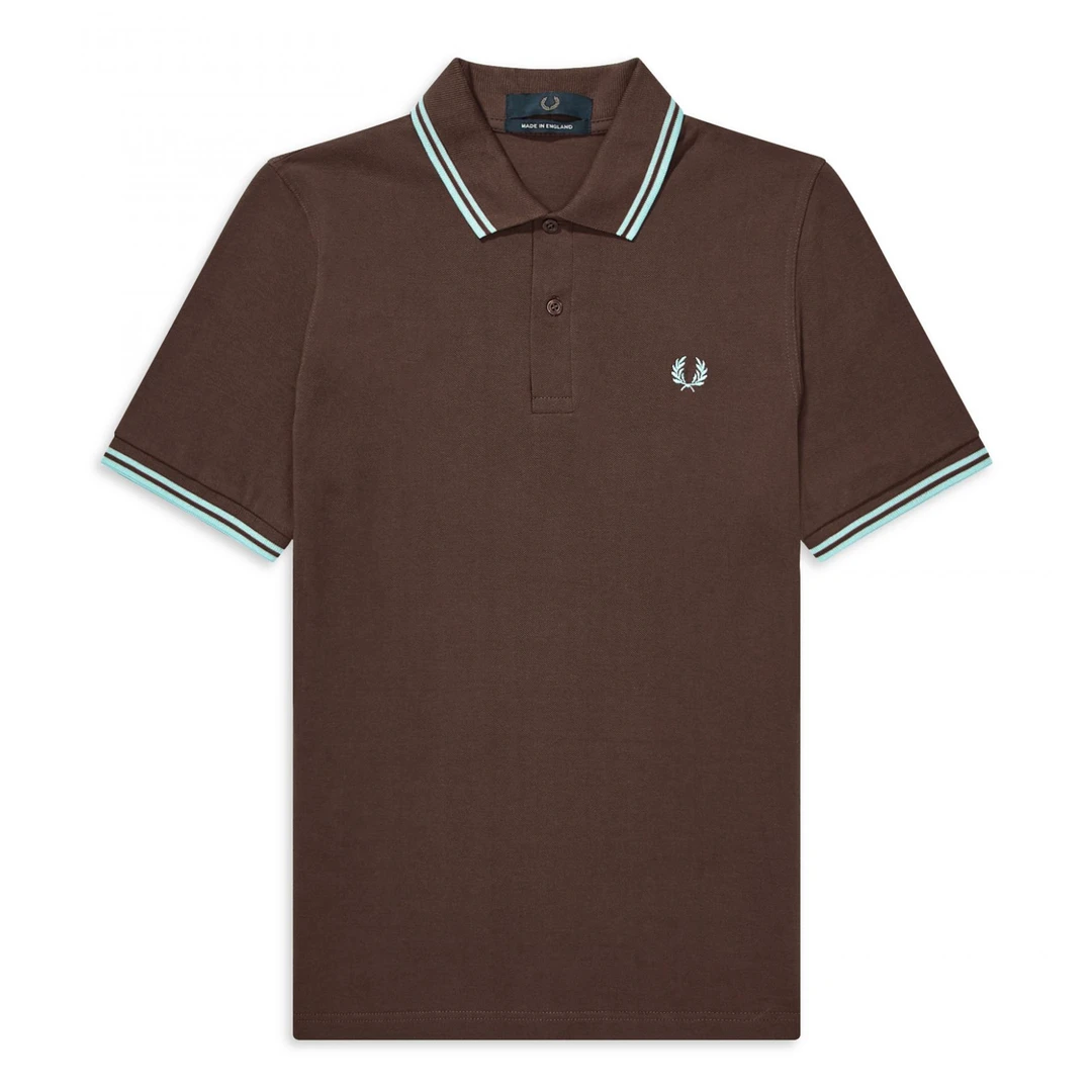 Keep it classic in a M12 Fred Perry polo! This chocolate hued cotton polo shirt features ice blue piping with a matching ice blue embroidered laurel on the chest. Designed in their famous streamlined fit – slightly boxier than the M3600 – it’s production is a real labor of love, with each polo knitted, dyed, cut, embroidered and hand-finished in Leicester, England.