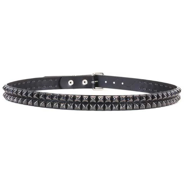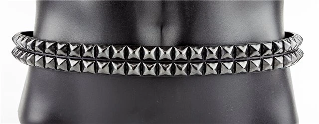 Made of a durable black leather with two rows of black 1/2″ pyramid studs and removable buckle, this studded belt is a rock wardrobe classic! Unisex sizing, view size chart for fit.