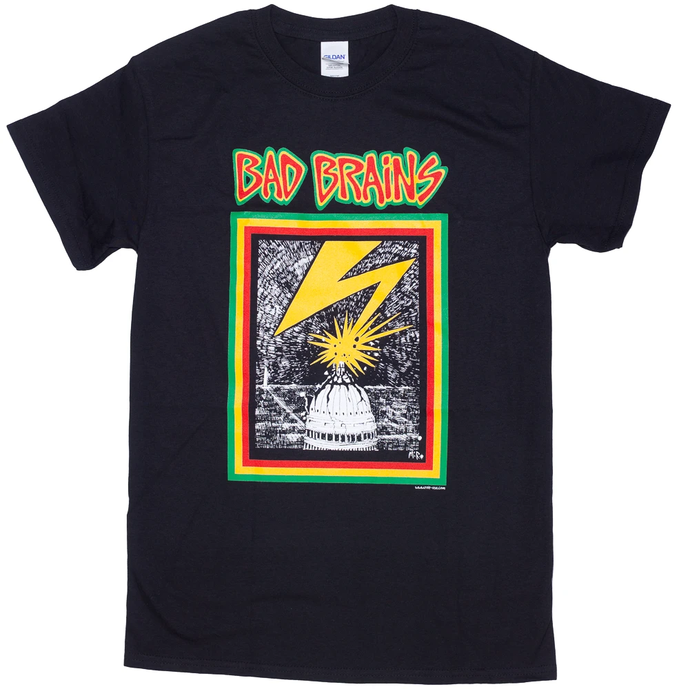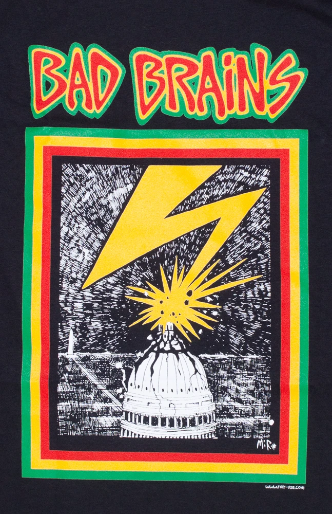 A must own t-shirt for any punk fan! This officially licensed t-shirt features legendary D.C. hardcore pioneers Bad Brains album cover of the Capitol building being struck by lightening.