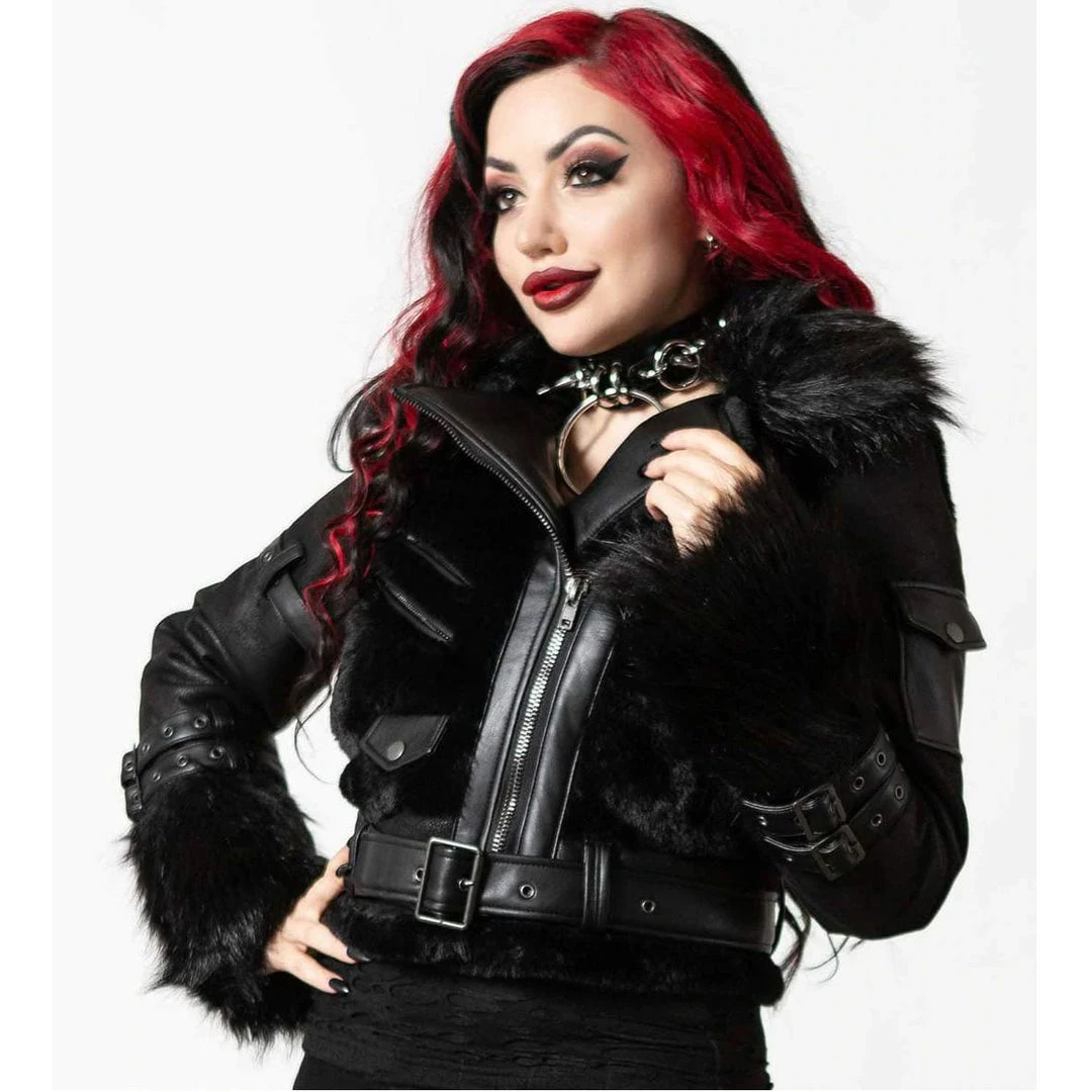Keep warm while serving serious looks in the killer Alchemy Aviator Jacket from Killstar. This unique jacket features mixed faux fur and faux leather details for a warm and comfortable fit. Complete with buckle and zip details, this is a must-have piece for any winter wardrobe!