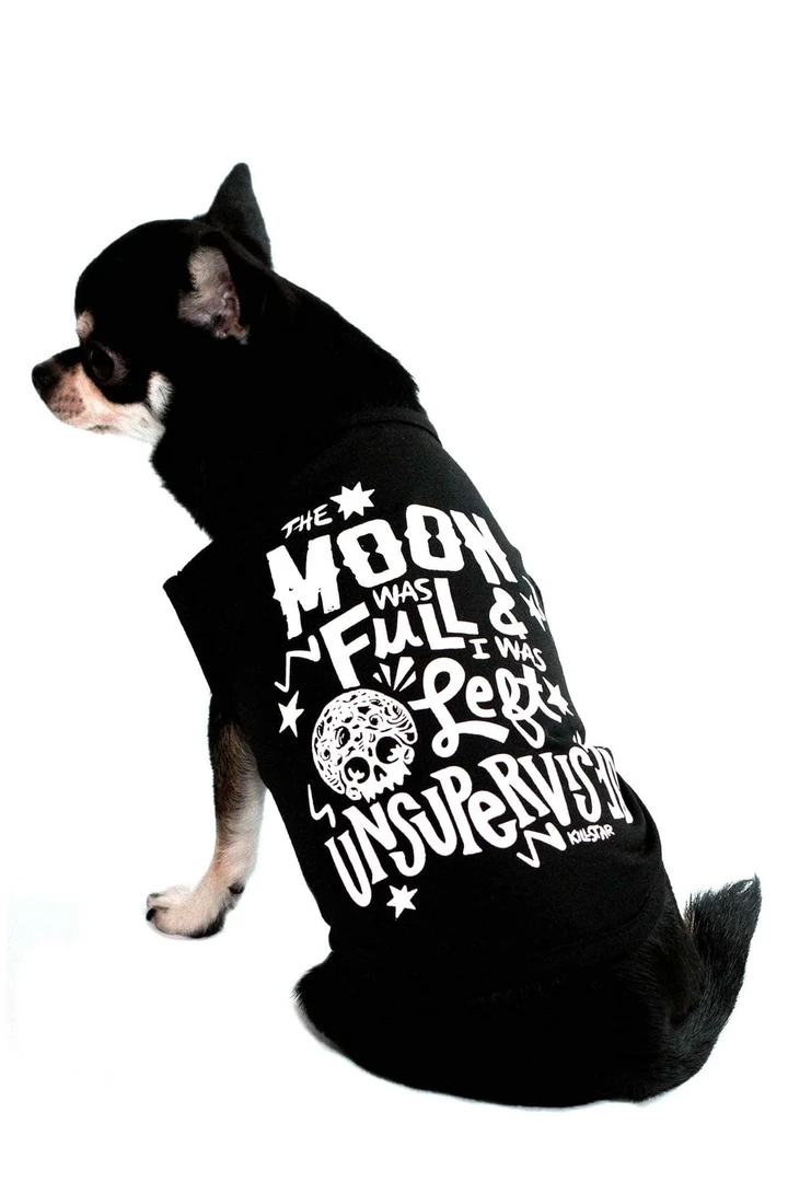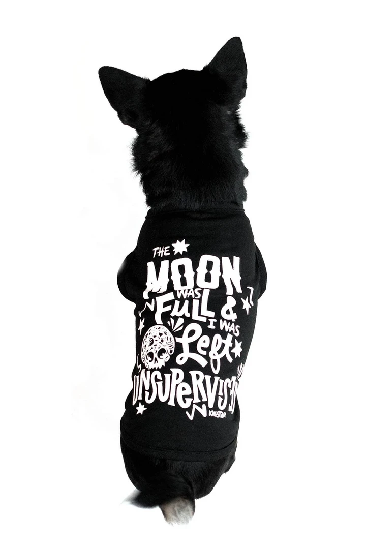 Just blame it on the full moon. Perfect for your little troublemaker, this ‘Full Moon’ Pet Shirt from Killstar. Made of a soft and comfy jersey with a printed graphic on the back. Large neck opening so you can pull on with ease.