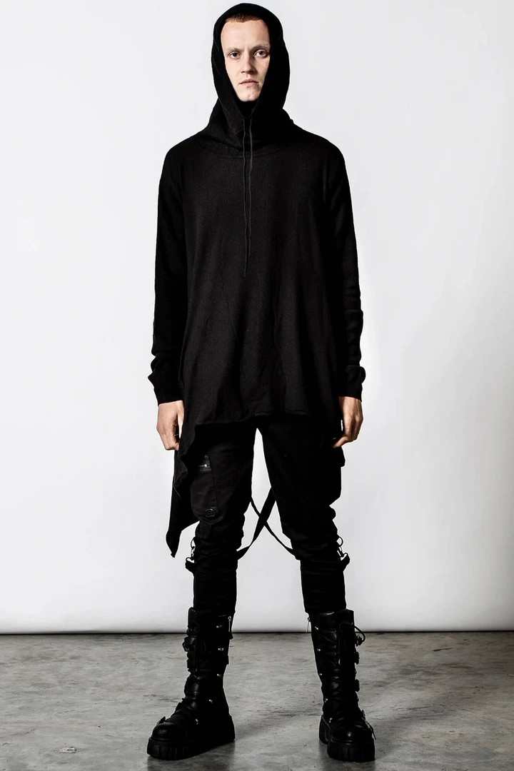 Get super cozy in the You Are Warped Sweater from Killstar. Made of a a soft-touch knit, complete with a hood with pull strings, an asymmetric hanky hem and long sleeves. The long length makes it super versatile – wear over leggings/denim or on its own as a dress!