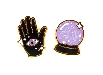 Come, let your fortune be told! This mismatched pair of Fortune Teller mini stud earrings from LuxCups Creative are made of a polished 22k gold plated metal with enamel details.