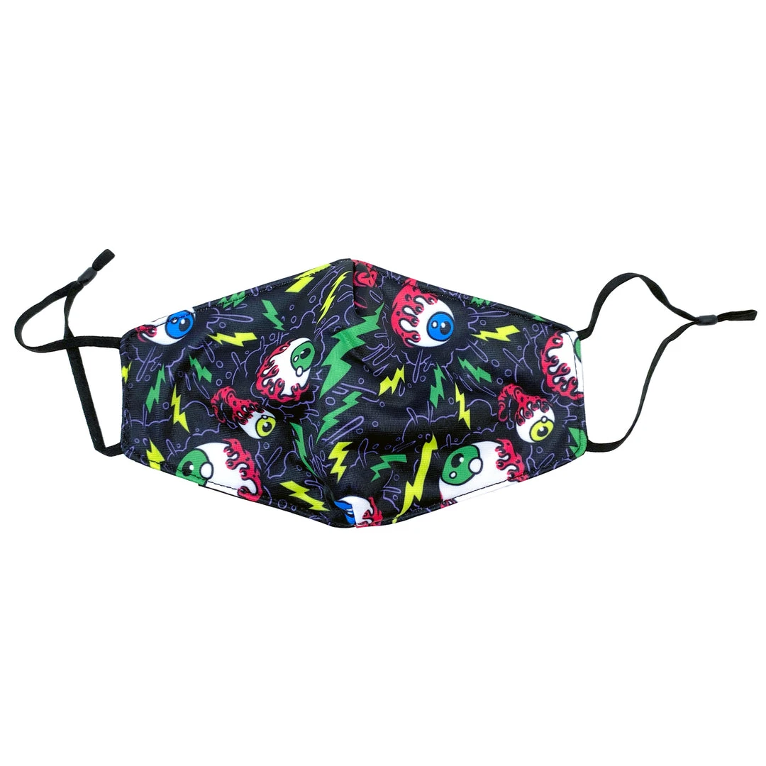 The Electric Eyeballs pattern is filled with drippy eyeballs and neon lightening bolts. You’ll find Sourpuss masks are comfortable with adjustable straps. Each mask includes a removable filter.