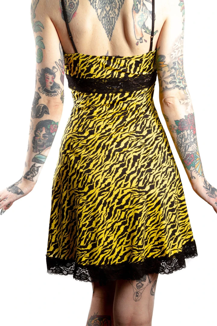 Oh mylanta! The new Pizzazz Slip Dress in Yellow Zebra *might* give you the vapors! It’s the perfect combination of sassy, cute, and vavvavvoom. The Pizzazz dress is made out of a super stretchy spandex jersey, printed with an eye-popping yellow zebra print. It’s trimmed with soft lace and has adjutsable bra-style straps to ensure a perfect fit!