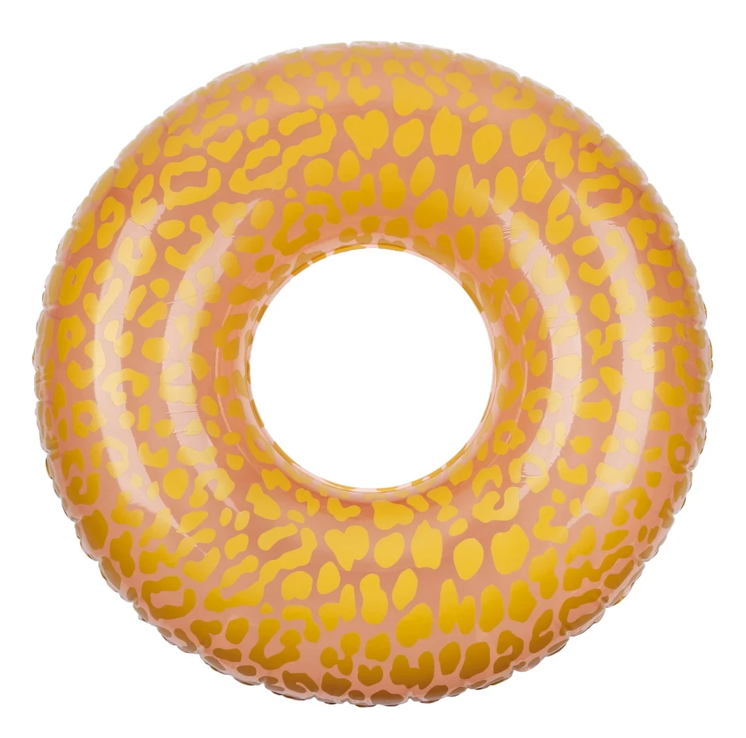 Let out your wild side with this shimmering golden leopard print pool float! Made of durable, non-toxic, phthalate-free PVC, this inflatable pool ring is sure to add some glam to your poolside hangs.