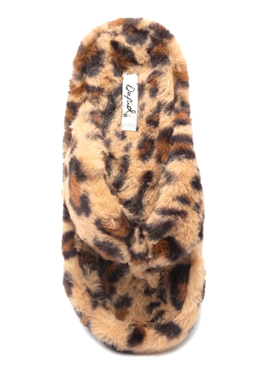 Slip your tired feet into these Leopard Fluffy Sandal Slippers! Made of a super soft faux fur in fabulous leopard print, these slippers feature a grippy rubber bottom and are great for lounging about the house.