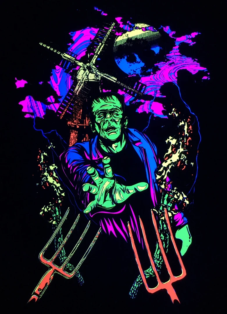 Fight back Frankenstein’s Monster with this killer flocked blacklight poster!