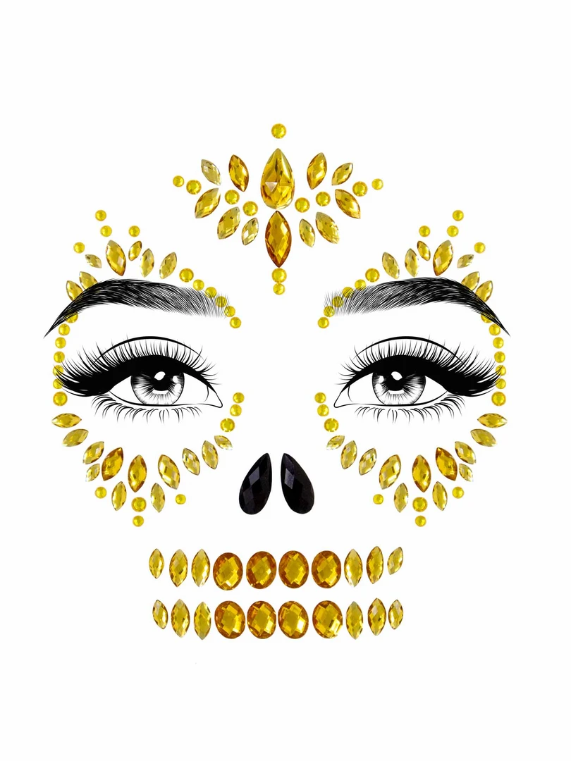 Take your skeleton costume to the next level with these stunning face jewels. These gold gems adhere well to all places on the body like the face, chest, or hands, and they feature skin-friendly material which is safe to be used on both the face and nails. These stones will be sure to make you stand out!