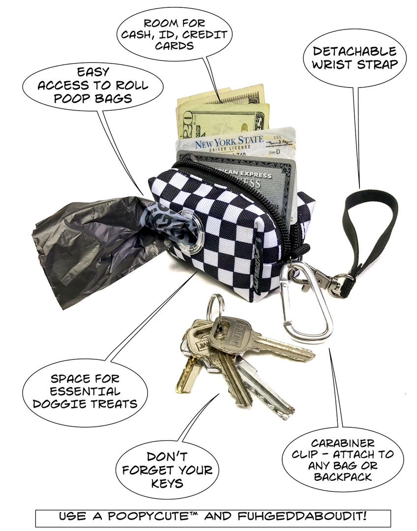 poopyCUTE doggie poo bag dispensers are so much more than just that! They can hold a standard roll of disposable bags with additional room for your credit cards, ID, cash, lip balm, keys and of course – doggie treats! Attach to your dog’s leash with the velcro tabs or use the detachable wrist strap or carabiner clip. Incredibly useful and made of a super sparkly pink shimmer material. Glam up your daily walks!