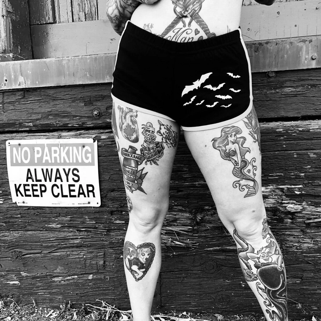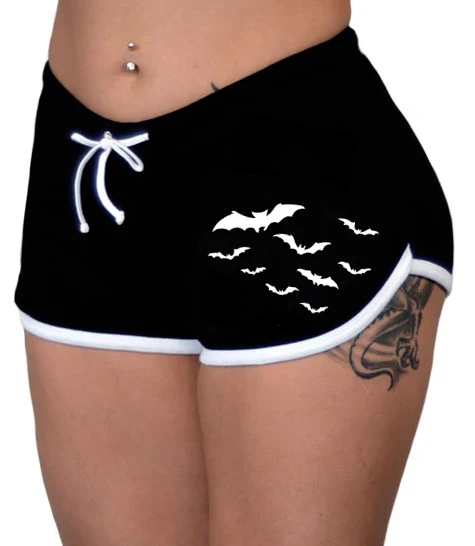 Ain’t no gang like a BAT gang! Grab your best ghoulfriends and head out for some summer fun in these Bat Gang shorts from Pinky Star! With that retro gym short styling we love, these soft knit black shorts features a bats graphic on one leg, drawstring waist, and a flattering dolphin hem fit complete with contrast trim.