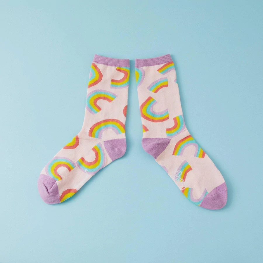 Flair for your feet! Put a rainbow in every step with these sweet Rainbow Print pink socks from Punky Pins! We love them paired with chunky mary janes and creepers.