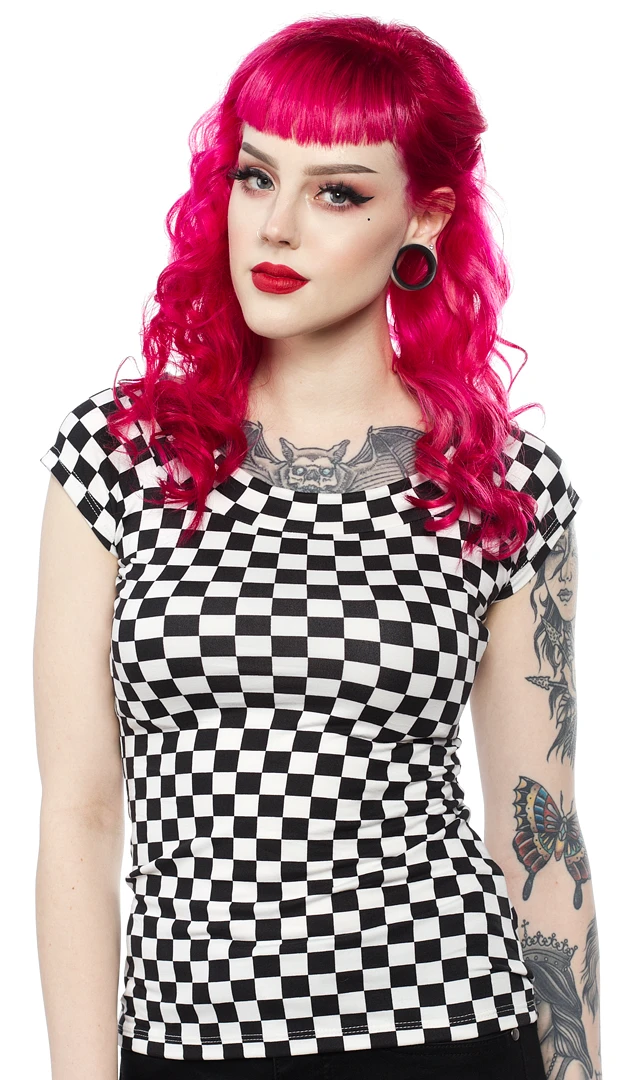 This Retrolicious Boat Neck top is the perfect staple to add to your collection, and now is available in a fun black and white checkered print! You can pair it with so many different things: jeans, skirts, shorts, or whatever your heart desires. The material is so soft and stretchy, you’ll love wearing this top!