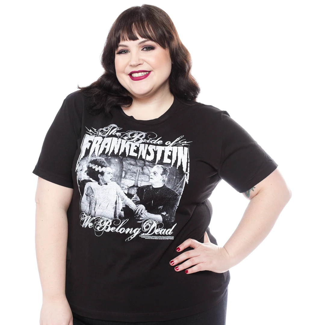 Even in death, these two are still together forever on this We Belong Dead tee from Rock Rebel. Their original design is printed on a soft, 100% cotton, black, fitted ladies tee.