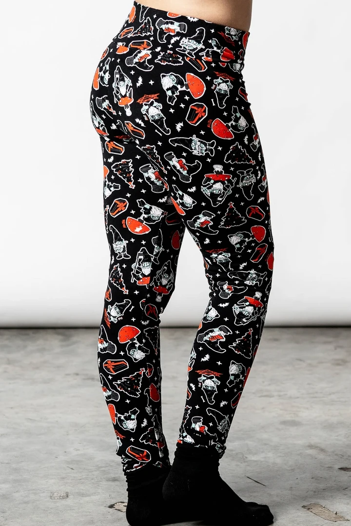 These aren’t your average garden variety gnomes. No. These guys are up to something far more sinister. The Gnomies lounge leggings from Killstar are perfect for lazy days, sleep-overs, naps and movie marathons. Made in a stretchy soft fabric for perfect comfort and fit, featuring an all-over hexmas print of gnomes, mushrooms, trees, coffins and more. Pull on style with an elastic waist. Complete the set with the matching Gnomies long sleeve top!