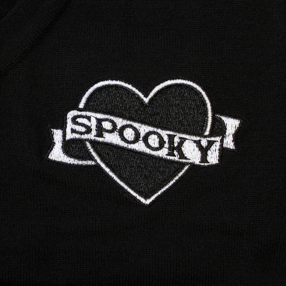 We love anything that’s a little spooky, so of course we had to make a new Spooky Cropped Cardigan! This stretchy, soft cardigan features two perfect little “Spooky” hearts embroidered on the chest panels, with contrast white buttons. It’s spooky cute!
