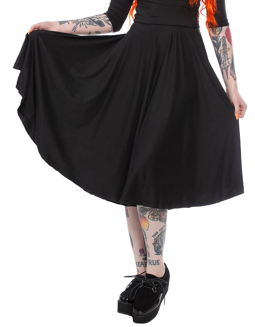 The new Ella skirt from Wax Poetic is to die for! It’s the perfect little black skirt staple for your witchy wardrobe. It looks perfect with your favorite tops tucked into the wide, stretchy waistband, and it twirls like magic! Complete with pockets, it also looks amazing with a petticoat peeking out for some added drama. As always, made with love in the USA!
