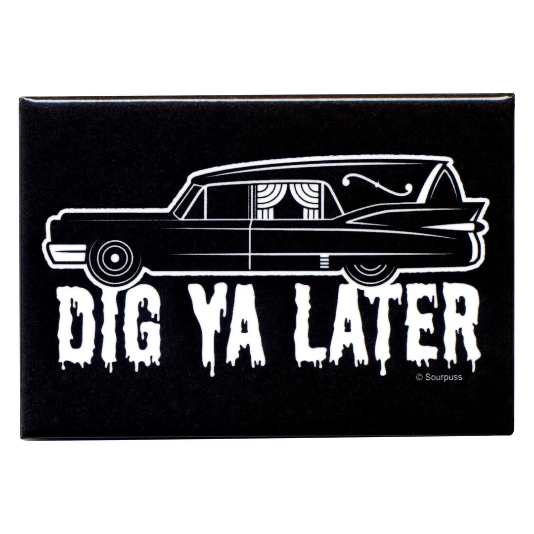 Dig ya later! Calling all hearse aficionados! We’ve taken our Dig Ya Later artwork and added it to an all new magnet, perfect for displaying your love of morbid rides.