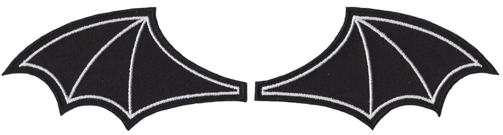 Get batty with our Bat Wing Patches! This pair is solid black with white embroidered details. They can be adhered to your vest or jacket with hot iron and/or a little needle ‘n’ thread reinforcement.