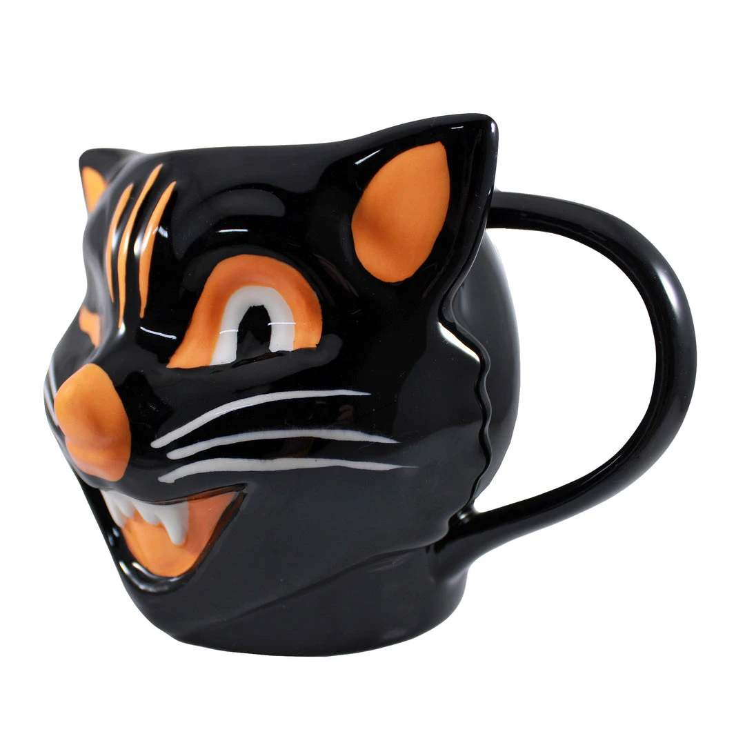 Sip your favorite hot beverage in classic Halloween fashion with our signature Black Cat Mug! Inspired by vintage Halloween decorations of yore, this cute figural mug is a must-have. Not a hot drink person? It also makes a great pencil cup or makeup brush holder!