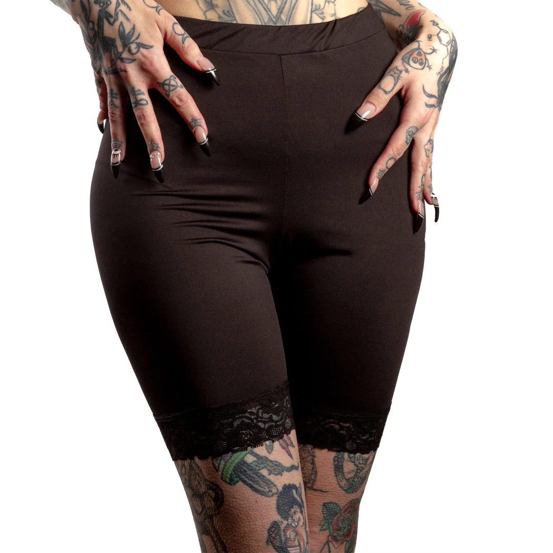 Black bike shorts are a must, and the new Hi Waist Pizzazz shorts in black are an ABSOLUTE must! These comfy and stylish shorts are made out of a stretchy poly knit, have a stretchy elastic waistband, and are trimmed in soft black stretch lace.