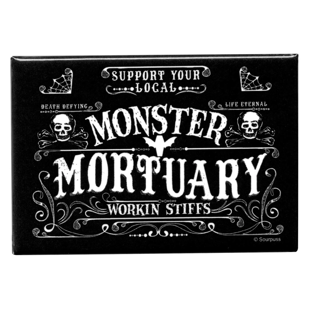 Always an honest day’s work down at the Monster Mortuary! Make your fridge, file cabinet or locker as creepy as you are with our Monster Mortuary rectangle magnet.