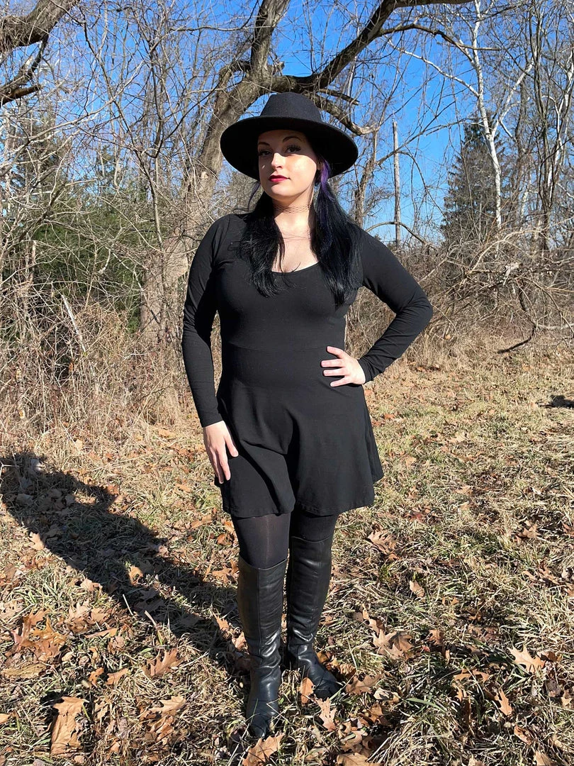 The new Spiderweb Cutout dress is every pinup ghoul’s dream! This ultra soft, stretchy and flattering silhouette is business in the front and a party in the back! We can’t get enough of the spiderweb laser cutout and perfect-length sleeves. We’re pairing this with our favorite fishnets and combat boots for the ultimate glamour ghoul look!