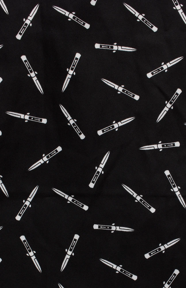 If you’re sweet but dangerous, then you might be a Bad Girl. Our newest silky scarf is ideal for the gal who’s adorable but a little deadly, with an all-over switchblade print that’s too sharp to pass up. It’s the perfect accent for your hair, neck, handbag, or even your home!