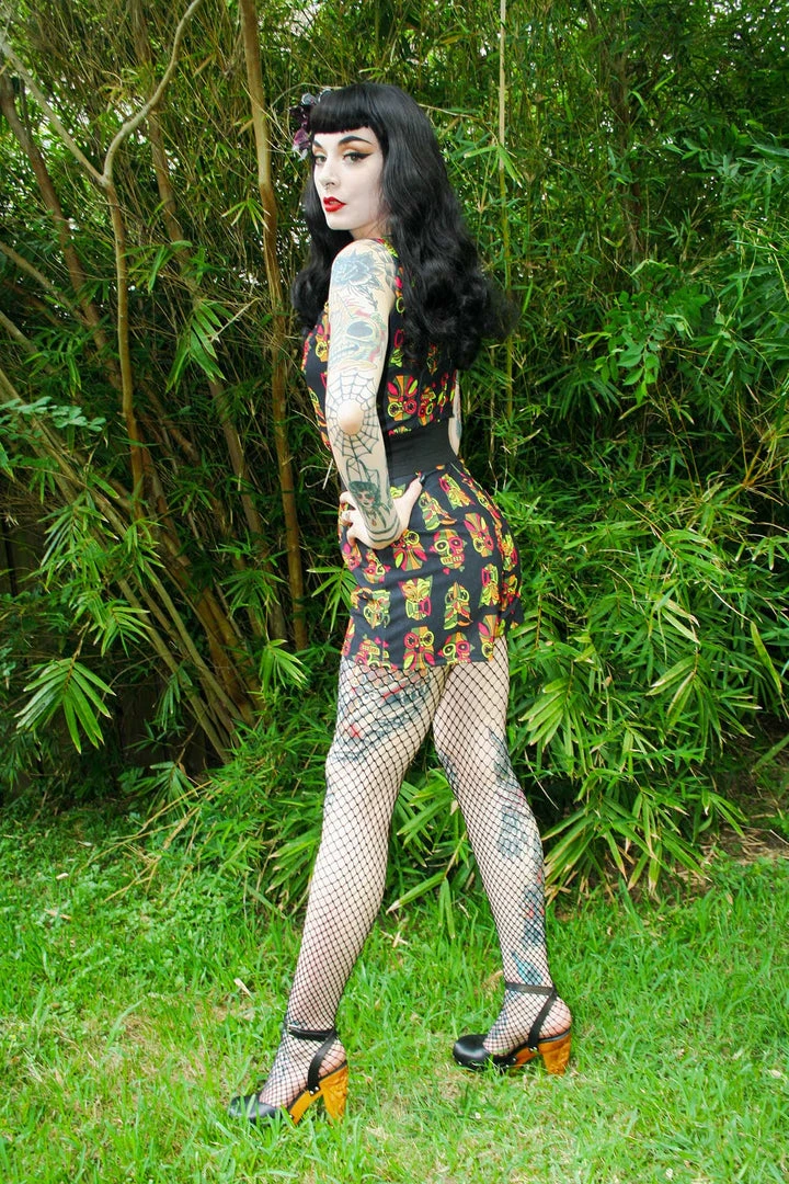 If you need to add a little more tiki to your wardrobe, the Tiny Tiki Sarong Playsuit is the way to go! We absolutely LOVE the neon tiki masks on this fun print!
