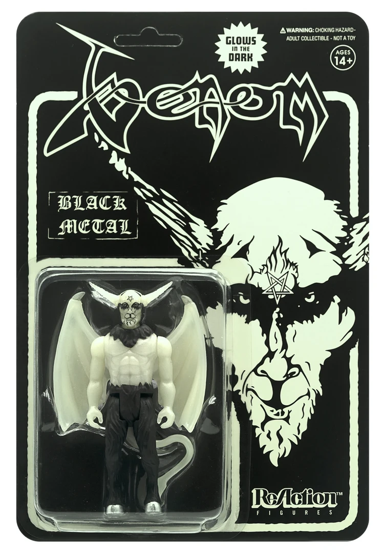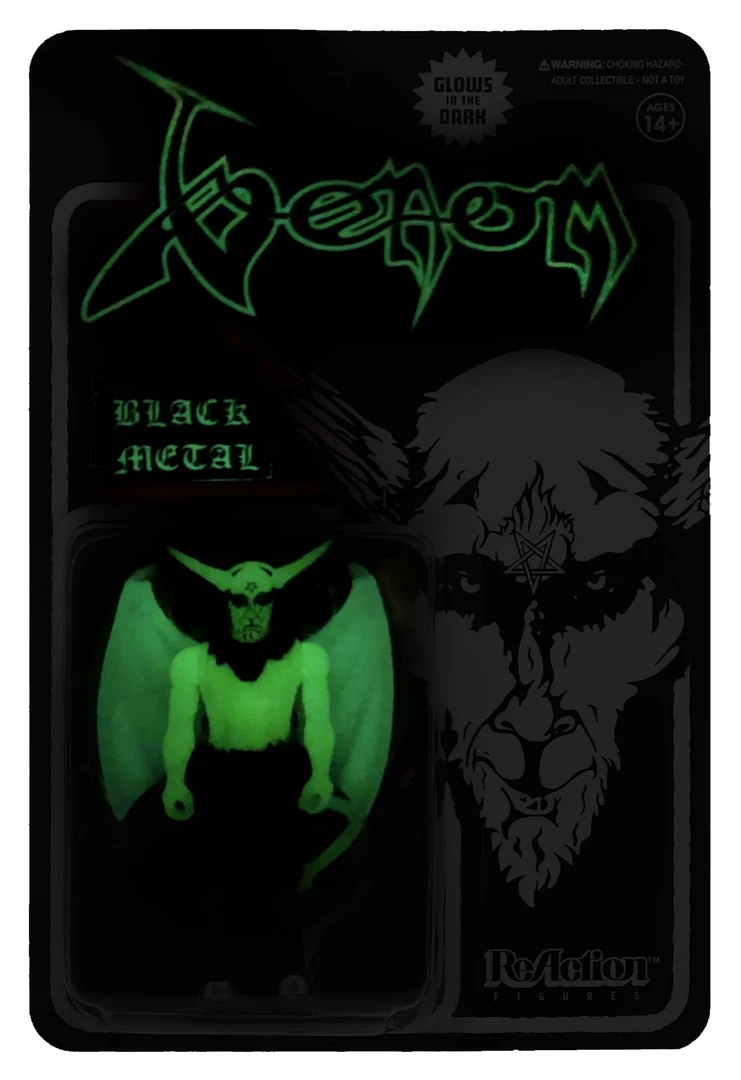 This version of Venom’s Black Metal demon is GLOW-IN-THE-DARK. It comes on a matching GITD cardback that commemorates the influential 1982 album. The figure is based on the concept given to Super7 by the band’s founding member Cronos.