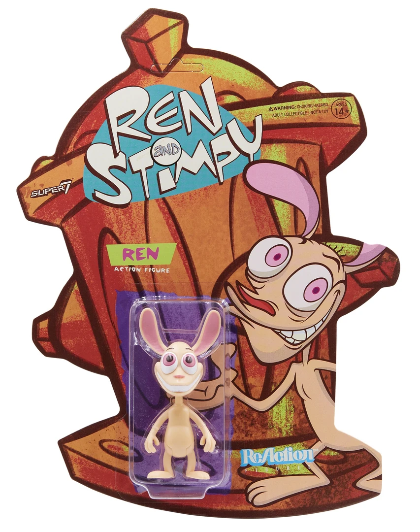 You’re darn tootin’ he’s angry! It’s everyone’s favorite psychotic Chihuahua, Ren! This 3.75” articulated Ren & Stimpy ReAction figure of Ren Höek is so true to his cartoon likeness that you’ll expect him to lose his temper and start ranting at any moment. There are certain characters that bring a bit of “spice” to a show, but in Ren’s case it’s more like a whole spice cabinet got tipped over, trampled by wildebeests, and set on fire…TWICE! Despite that (or maybe because of it) you know you NEED to have the Ren & Stimpy ReAction figure of Ren in your collection. How could you NOT, you eediot!