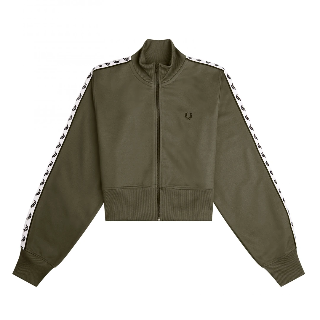 A cropped adaptation of Fred Perry’s original taped track jacket made in their signature sports tricot fabric in a great military green that replicates the original. It has a boxy, cropped fit with batwing sleeves, tonal enamel zip and Laurel Wreath track tape at the sleeve. **Listed in US Sizing! Please see size chart**