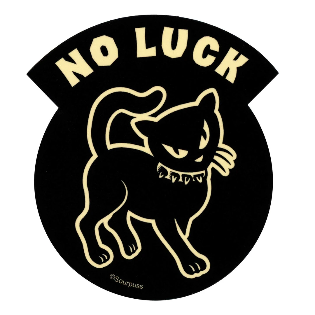 Nothing going your way? We hear you. Our No Luck Cat makes a welcome addition to your ride, laptop, water bottle – wherever you want a lil’ Sourpuss! Art by Sol Rac.
