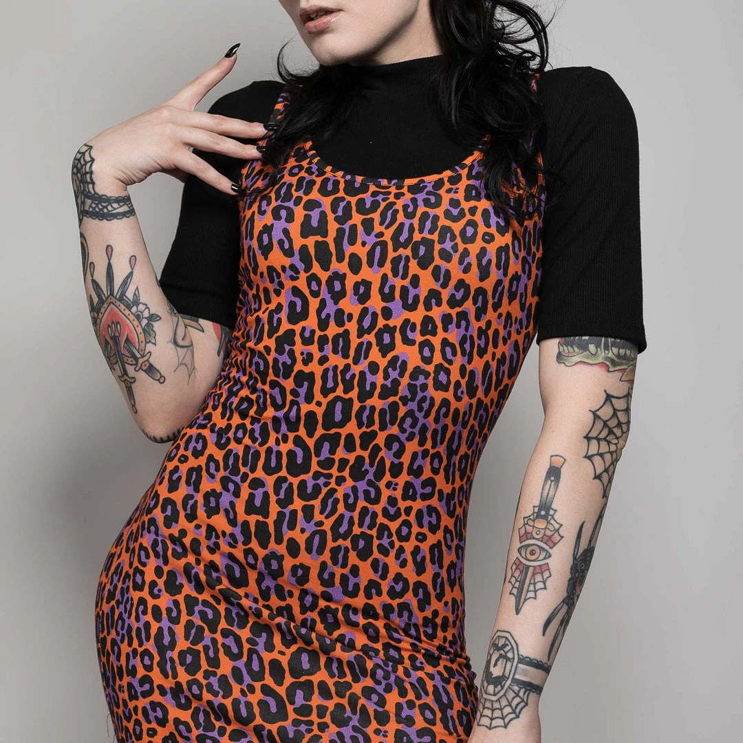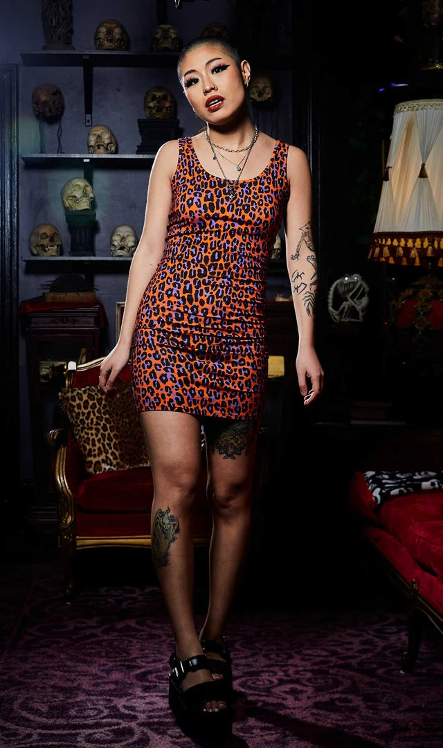 Strut your stuff in the new Orange Leopard tank dress! This stretchy, fitted dress features our orange and purple leopard print, and is so versatile it can be worn any which way you like!